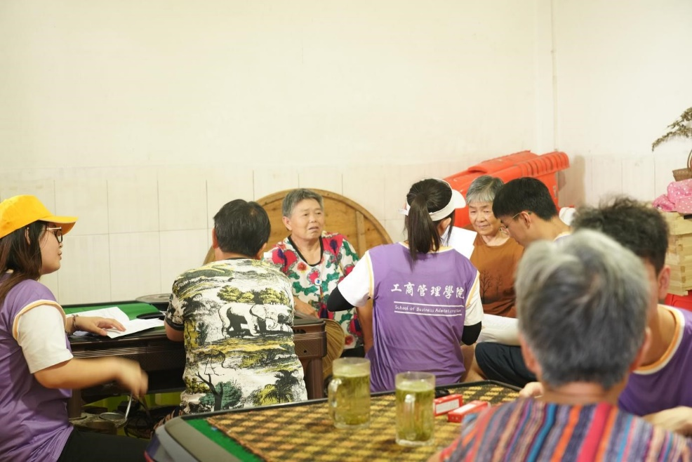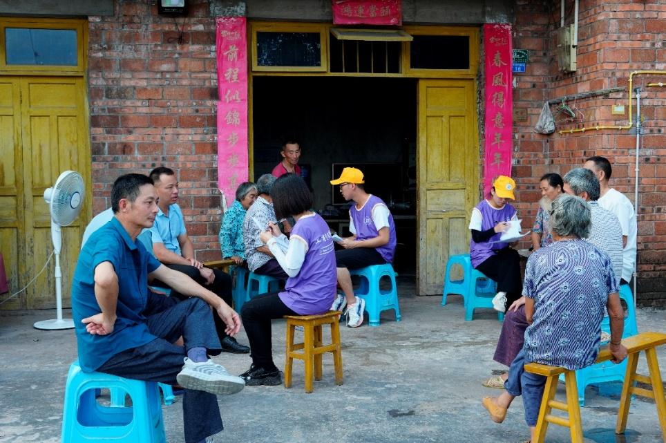 图为实践团成员晚上在红石村天堂庙与村中年迈老人访谈调研 杜佳桁