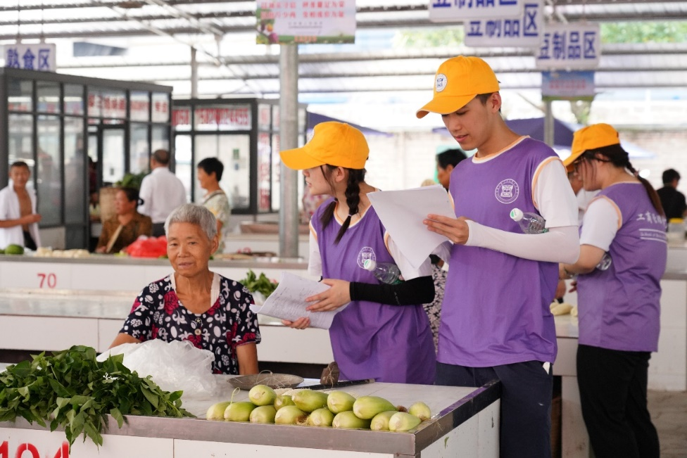 图为实践团成员前往红炉镇菜市场,调研农户生产销售情况 杜佳桁 摄