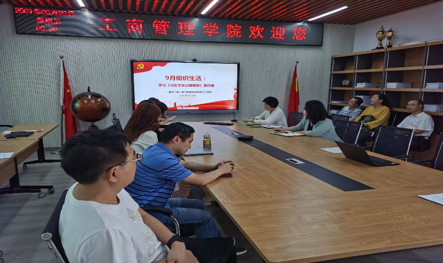 本次主题党日活动由教工三支部统战委员张丽同志领学了《习近平谈治国理政》(第四卷)。该专辑收录了习近平总书记在2020年2月3日至2022年5月10日期间的讲话、谈话、演讲、致辞、指示、贺信等109篇,分为21个专题,分为导论、总论、分论、要论四个部分,集中展示了马克思主义中国化时代化的最新成果,是全面系统反映习近平新时代中国特色社会主义思想开辟新境界、实现新飞跃的权威著作。张丽同志节选了第七个专题《把握新发展阶段,贯彻新发展理念,构建新发展格局》作为重点学习材料,进的新发展格局是一项关系我国发展全局的重大战略任务,需要从全局高度准确把握和积极推进。我们要认真贯彻落实习近平总书记重要讲话精神,科学把握新发展阶段,深入贯彻新发展理念,加快构建新发展格局,着力推动高质量发展,实现经济行稳致远、社会安定和谐。集中学习结束后,在场的党员同志围绕《习近平谈治国理政》(第四卷)畅谈学习心得体会。