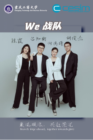 We战队成员陈露、胡俊杰、吕知衡、向禹绮(按拼音首字母排序)均为太阳集团2138MBA学生,他们以“踏风而来、共赴荣光”为战队口号,秉承“We are a team”的团队信念,参加了第十五届“尖烽时刻”全国商业模拟大赛。