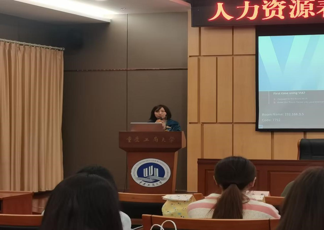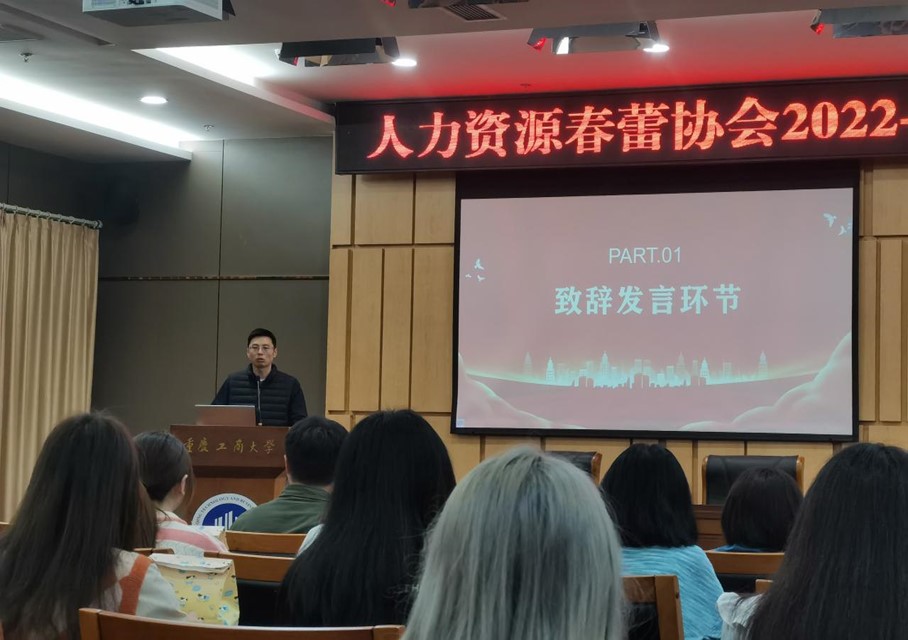 在干事自我介绍完毕后,李孜羽会长回顾了协会在过去一年以来各部门取得的优良成绩。在活动比赛方面,协会成功开展了2021级人力资源管理师生双选会,并圆满举办了人力资源管理数智系列讲座,获得了“新道数智人才杯”全国二等奖、全国大学生人力资源管理知识竞赛重庆市赛本科组三等奖等多项荣誉。在协会运营方面,本年度协会共招募了18名干事和25名会员,通过定期对干事们进行海报推文制作等方面的培训,目前,协会公众号共发布了13篇原创推文,制作了15张讲座宣传海报。除此之外,李孜羽会长还详细阐述了本学期的工作计划,并对未来协会发展进行了总结性发言。