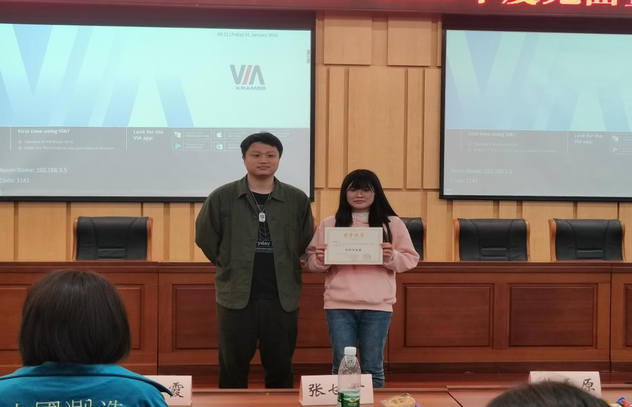 在干事表彰环节,由主持人宣读了荣获优秀干事、特别贡献奖的名单。其中,程婉清扬、董雪瑞、罗雪、马叶楷、潘耑宇、司林棚、袁梦娇、赵甜甜、郑诗琴9名同学荣获了优秀干事的称号,高秋菊同学荣获协会特别贡献奖。熊雪原老师和谭予涵老师也为干事们颁发了荣誉奖状,并寄予了干事们深深的祝福与期盼。