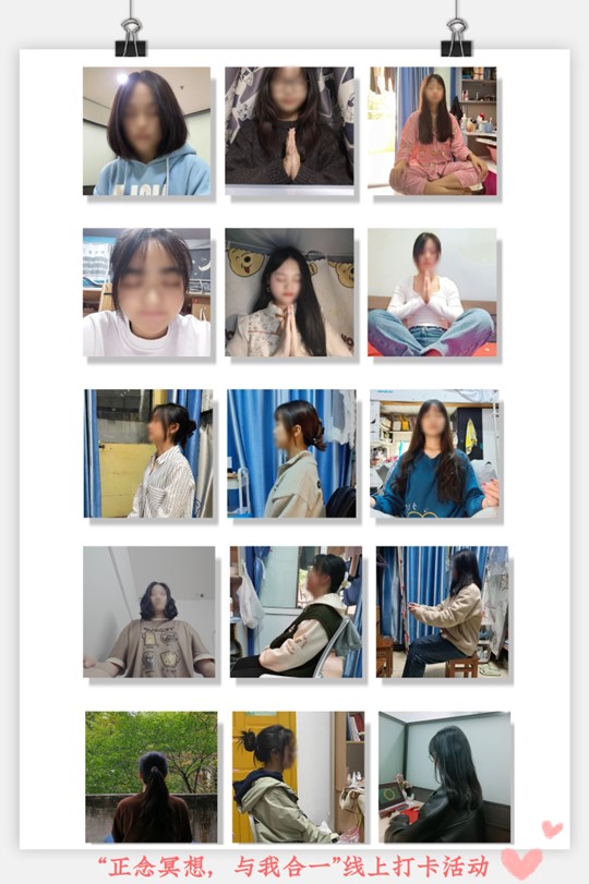 冥想是将我们的心意状态从繁化简、让我们的内心趋于平静的过程。此次冥想活动为期七天,同学们根据每天发送的冥想材料进行冥想并按时在收集表中填写信息并填写心得,最后上传冥想照片。