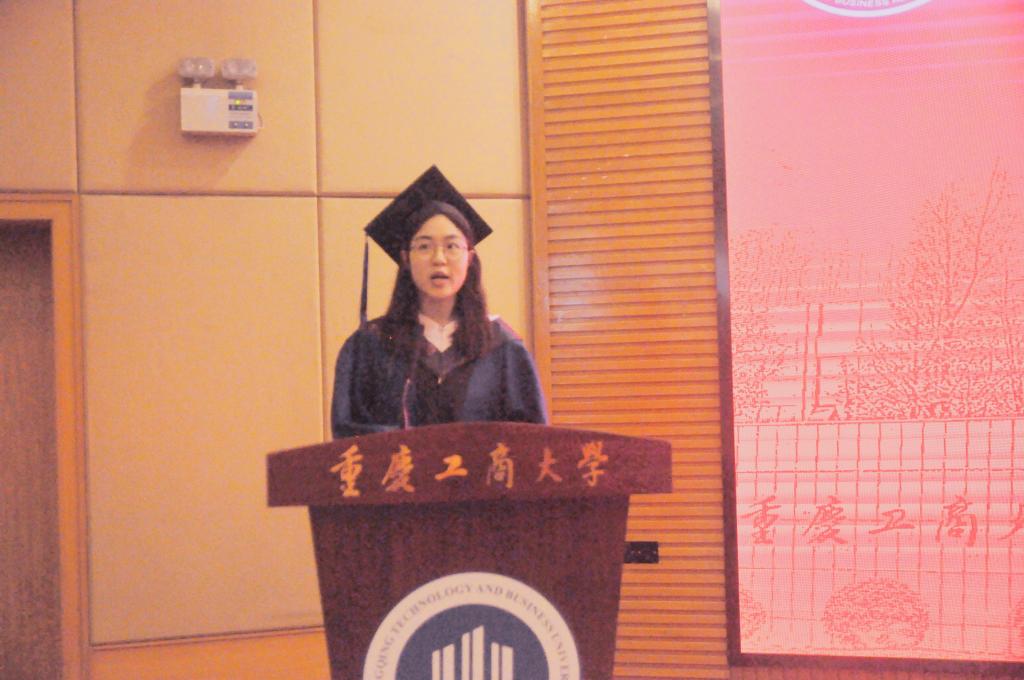 本科毕业生代表2019级人力资源管理专业一班杜安娜、硕士毕业生代表2020级旅游管理专业潘露依次发言,她们分享了成长故事,交流了求学感悟,并向学校、学院全体教职工表达了诚挚的感谢,同时祝愿全体毕业生一路高歌,驰骋人生。