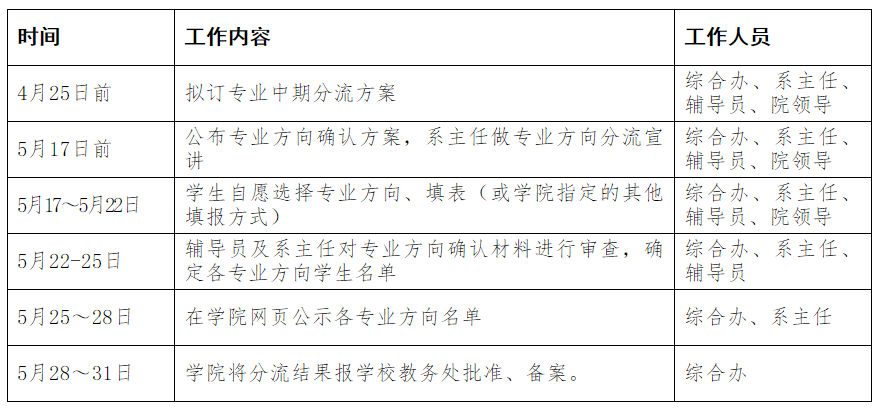 2、学院根据学生的志愿表确认其后三年的专业学习方向: