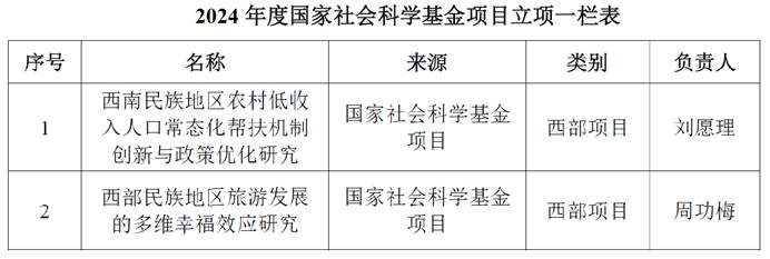 2024年10月,全国哲学社会科学工作办公室公布了2024年度国家社会科学基金年度项目的立项名单,我院刘愿理副教授、周功梅博士等2位老师喜获国家社会科学基金项目立项资助。