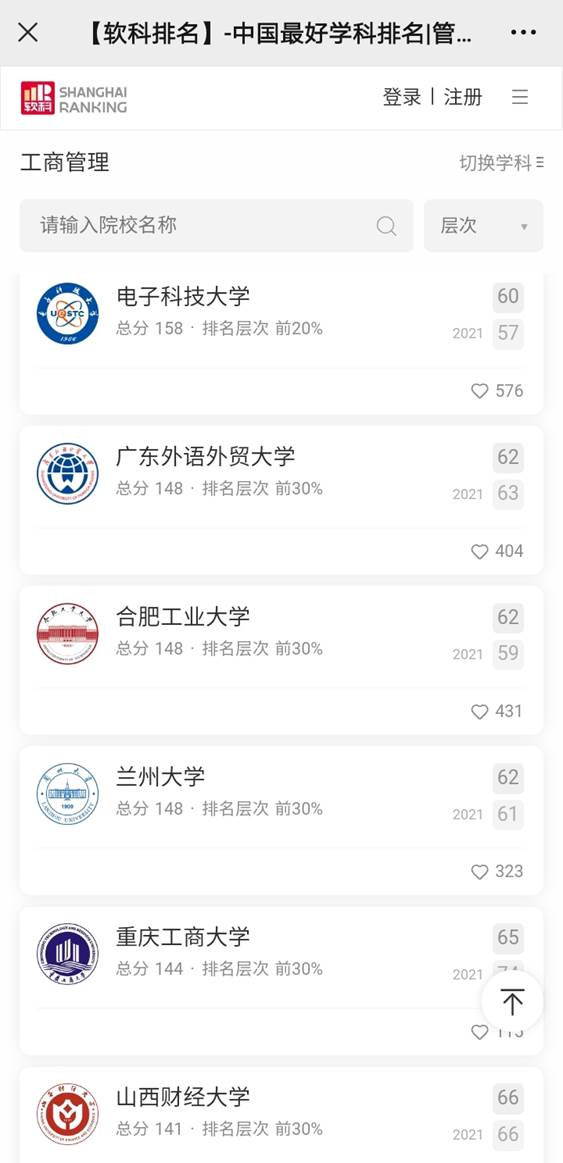软科在2022年9月正式发布了“2022年软科中国最好学科排名”。太阳集团2138工商管理学科再创佳绩,2022年软科排名全国第65名,并继续保持上升势头。软科中国最好学科排名自2017年开始对外公开排名,排名的指标体系由软科自主研发的“学科发展水平动态监控系统”内嵌的30多项指标所组成,涉及高端人才、科研项目、成果获奖、学术论文、人才培养等方面。我校工商管理学科排名始终保持在前30%。
