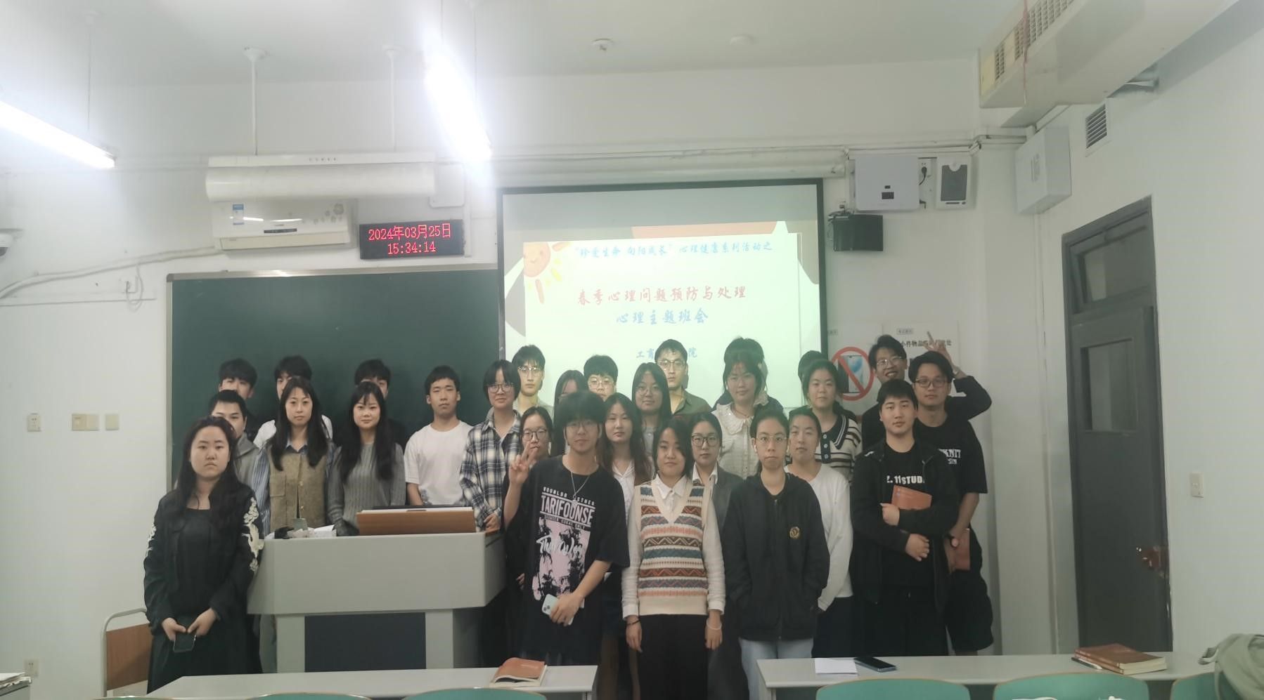 本次心理主题班会围绕“春季心理问题预防与处理”主题,采用专家讲述、视频科普等多样形式开展,通过“春季是心理问题高发期”、“正确认识抑郁症”以及“利用校内外心理资源”等环节,加深学生对春季心理问题特别是“抑郁症”的了解,进一步强化学生“积极求助意识”,引导学生合理利用校内外心理资源,做好春季心理问题的预防与处理。
