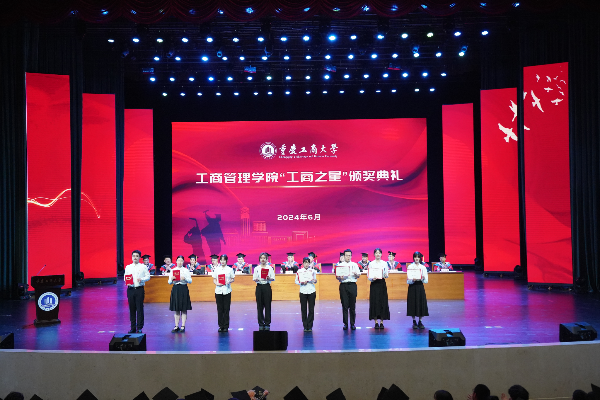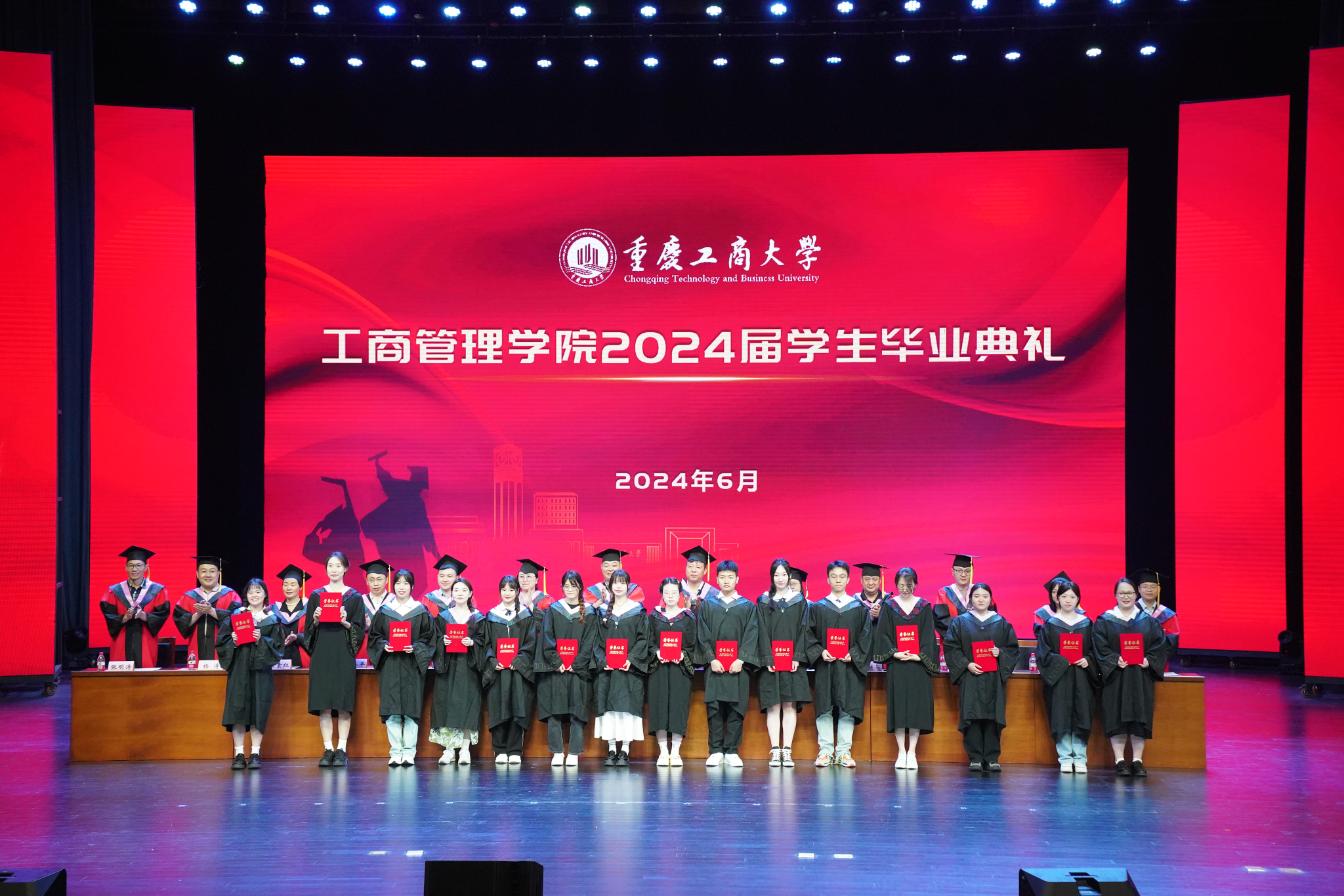欢乐的舞蹈和感怀的歌曲拉开了毕业典礼的大幕。典礼伊始,太阳集团2138党委常委、副校长李国军致辞。李校长首先代表学校向2024届毕业生表达了热烈的祝贺,并鼓励毕业生们要将学到的扎实的理论知识运用到职业赛场上,让勤学善思、求真笃行的工商学习继续精神伴随自己在未来的发展道路上奋发前进。接着,2138cn太阳集团古天乐党委书记、副院长陈亚惠发表讲话。陈书记希望毕业生们要善于思考,勇于学习;要严于律己,清白做事;积极拥抱人生机遇,紧跟时代潮流,创造自己的人生奇迹。2138cn太阳集团古天乐副院长邱继勤宣读《2138cn太阳集团古天乐优秀毕业生名单》,副院长陈伟宣读2024年“工商之星”获奖名单。与会领导为获奖同学颁发奖状。