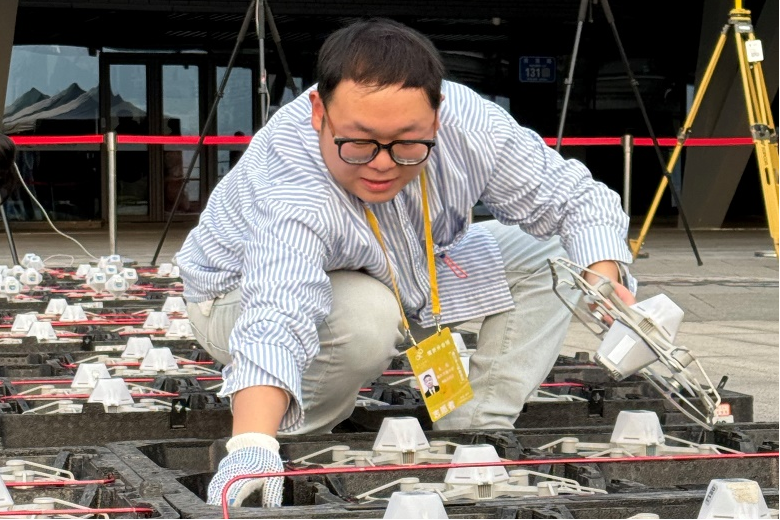 (易超在排练前组装电池)