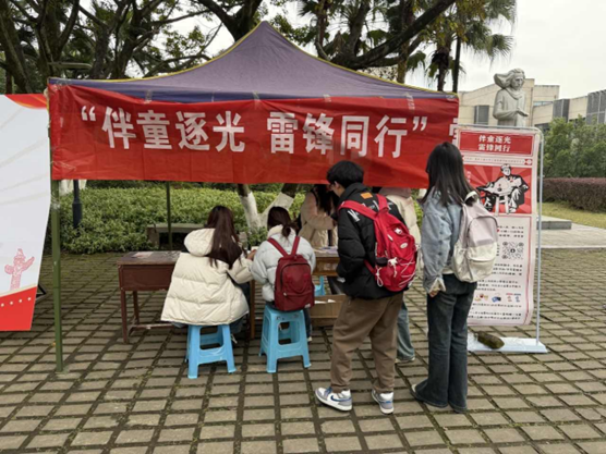 “伴童逐光雷锋同行”校园公益主题活动也在学校“一站式”学生社区火热开展。活动前期,分团委学生会收集雷锋事迹资料并制作宣传资料,在校园内营造浓厚氛围。从3月初开始,线下活动在江北校区食堂门口和南岸校区教学楼门口同步开展,现场气氛热烈。同学们通过朋友圈宣传获得抽奖机会,积极参与活动。活动现场设置了签名版、明信片书写区和涂鸦区,大家纷纷写下祝福、表达关爱。线上活动同样精彩,同学们上传照片参与集爱心活动,爱心企业根据爱心值捐赠物资。此次活动得到了全校师生的广泛关注和积极参与,共吸引了众多同学加入,累计集爱心多次,为山区留守儿童捐赠了大量爱心物资。活动的成功举办,让师生感受到雷锋精神的力量,增强了社会责任感,激发了关心弱势群体的热情。