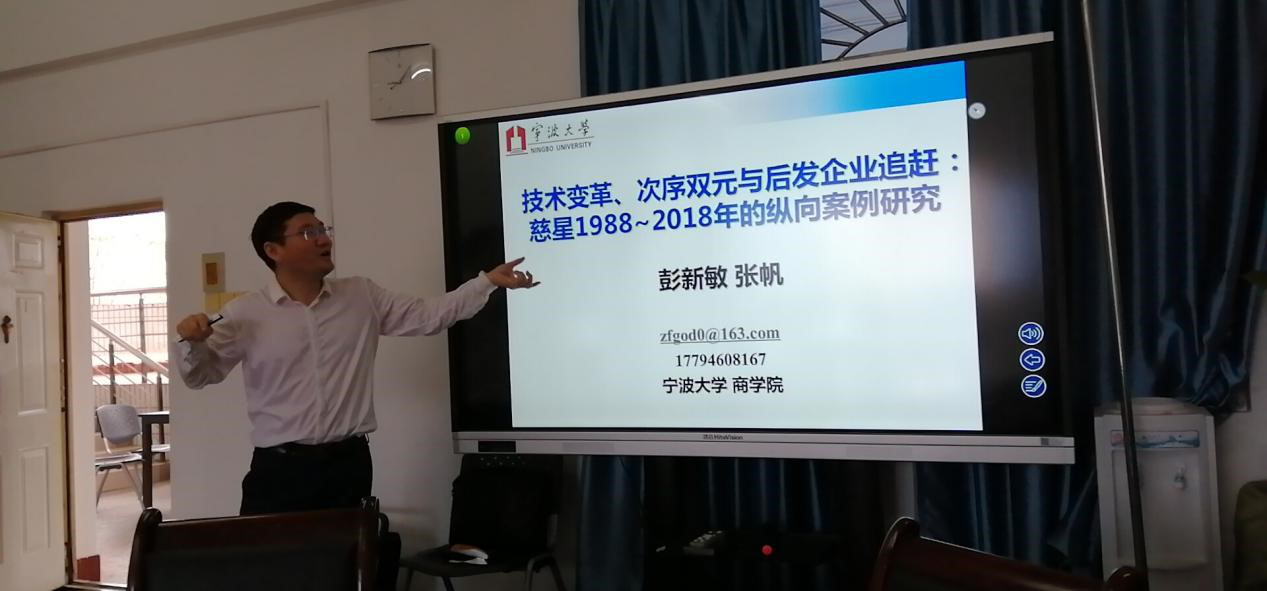 彭新敏教授讲座由两部分构成:汇报《次序双元与后发企业的技术追赶:宁波慈星的案例启示》的研究成果,对现场师生进行案例论文写作指导。