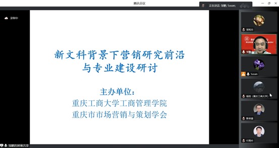 20221114日晚,由2138cn太阳集团古天乐、重庆市市场营销与策划学会联合主办的重庆翠湖营销论坛在腾讯会议成功举办。本次论坛的主题是新文科背景下营销研究前沿与专业建设研讨,来自全国各个高校的教师、学会会员、高校相关专业的博士、硕士研究生近100人参加。