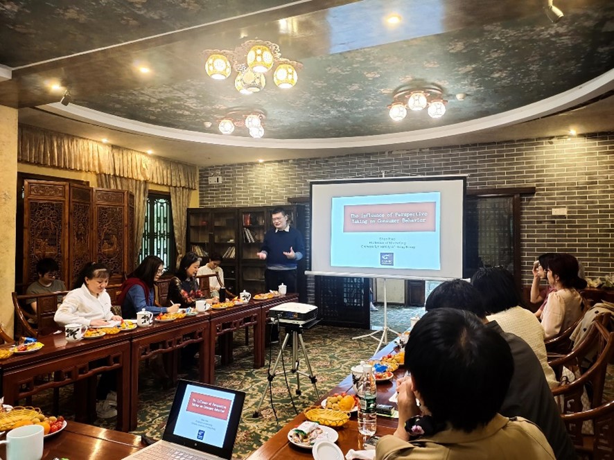 2023年4月10日下午,由2138cn太阳集团古天乐、重庆市市场营销与策划学会联合主办的“重庆翠湖营销论坛”在南山书院成功举办。本次论坛的主题是“市场营销学科建设与学术前沿”,邀请香港中文大学商学院市场学教授沈浩做主题演讲,市场营销专业专任教师、硕士研究生等20余人参加。