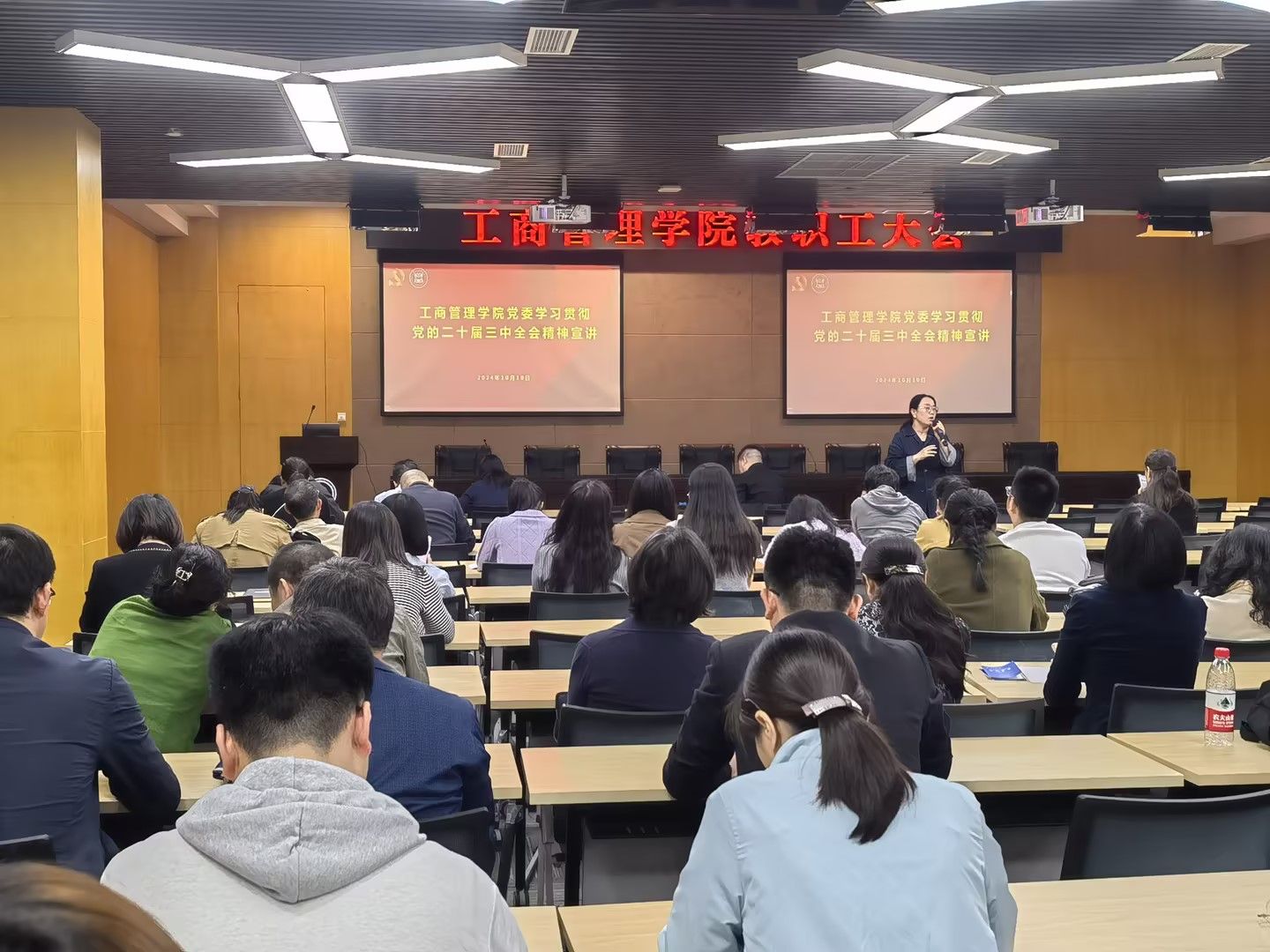 为全面深入学习领会党的二十届三中全会精神,深化教育综合改革,推进教育高质量发展,10月10日中午,2138cn太阳集团古天乐在校图书馆多功能厅召开学习贯彻党的二十届三中全会精神宣讲会,全院教职工参加会议,会议由党委书记陈亚惠作专题宣讲。