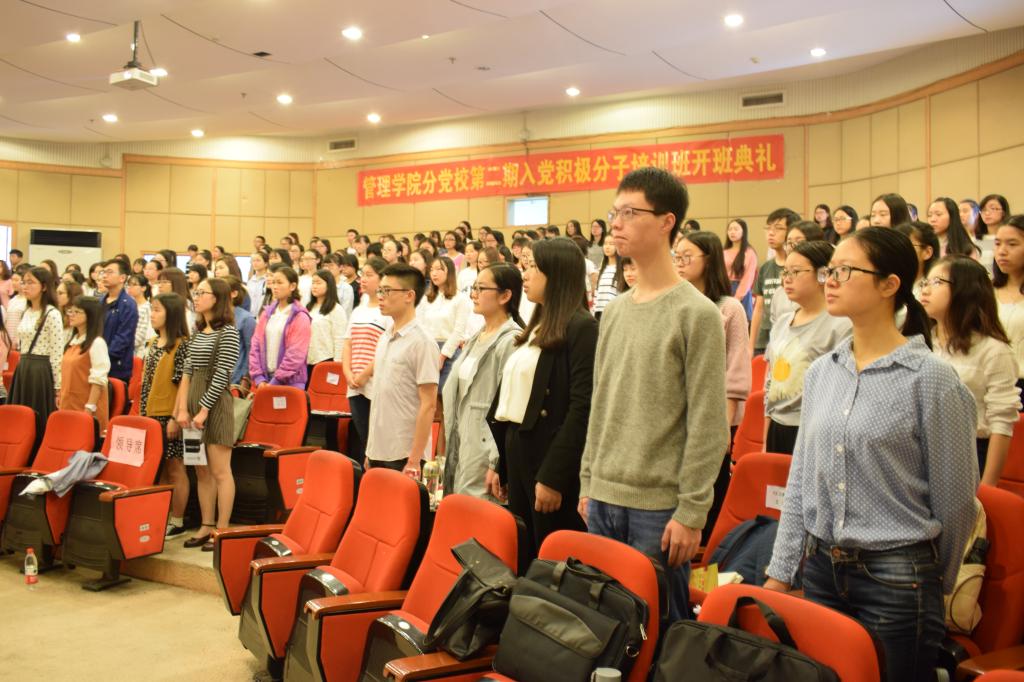 10月22日上午8:00,管理学院分党校第二期入党积极分子培训班开班典礼在我校博智楼7200学术报告厅准时召开。管理学院党总支王建明书记,党总支尹建平副书记,学团办主任卓志宏老师,学生第一支部书记王瑛老师,学生第二支部书记何祖润老师以及学生三支部书记张檬老师出席此次开班典礼。