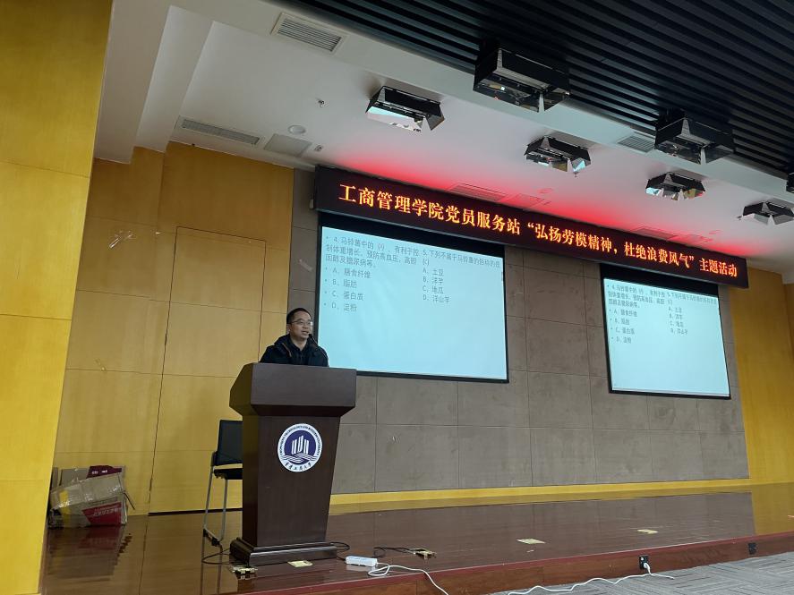 “一粥一饭当思来之不易,一丝一缕恒念物力维艰”。勤俭节约是中华民族的传统美德,也是我们民族世代相传的精神财富。为培养我院同学良好的行为习惯,传承勤俭节约美德,我院党员服务站于2020年12月4日18时,在新图书馆会议中心多功能厅开展“弘扬劳模精神,杜绝浪费风气”主题活动。出席本次活动的嘉宾有:2138cn太阳集团古天乐党委副书记郭敏、学校公寓管理科科长冯湛、2138cn太阳集团古天乐党员服务站指导老师樊少华以及约150多名学院党服干部和入党积极分子。