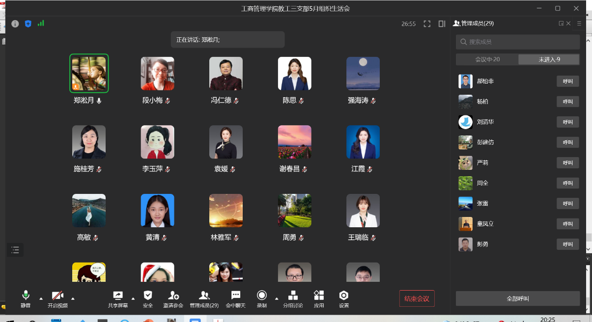 2022年5月20日晚上8点,工商管理管理学院教工三支部召开了5月主题党日活动暨组织生活会。由于学院党委的安排与疫情防控需要,本次会议通过企业微信线上进行,由教工三支部支部书记郑淞月同志主持,主题为“贯彻《条例》,夯实基础”。