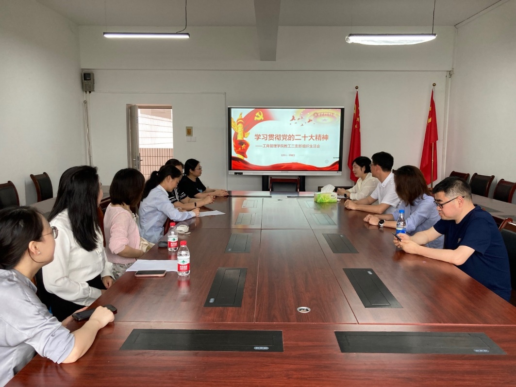 5月19日下午,教工第二党支部在明德楼3021会议室开展“学习贯彻党的二十大精神”主题学习活动,会议由党支部委员邓辅玉主持并领学。 邓辅玉以“深入学习贯彻党的二十大精神永远跟党走奋进新征程"为题,用“党的二十大精神关键词”的方式向教工二支部全体党员分享了学习的切身感受、所思所悟。大家纷纷表示,要深入学习宣传贯彻党的二十大精神,切实将学习成果转化为扎实工作的不竭动力,在推进中国式现代化中彰显担当、展现作为。