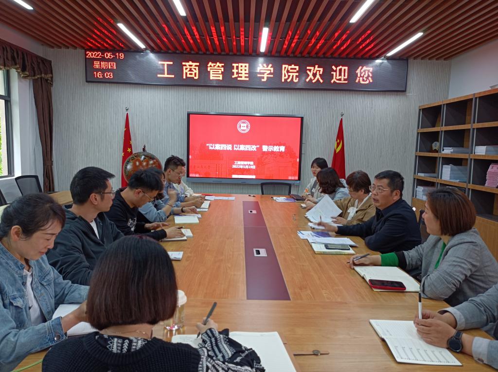2022年5月19日下午,学院在明德楼4010会议室,开展了2022年师德师风及党风廉政 “以案四改、以案四说”警示教育活动。学院党委书记彭勇主持会议,教工支部书记、学生支部书记、各系部主任及行政教师参加会议。