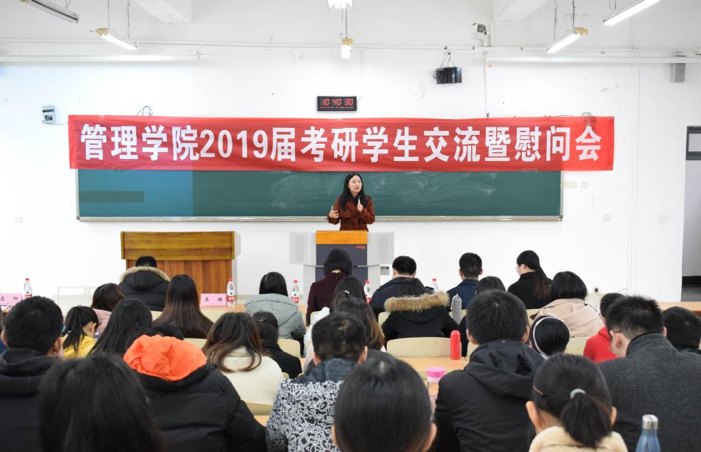 11月15日上午10:30,管理学院2019届考研学生交流暨慰问会于博智楼7207准时召开。管理学院分党委副书记、纪委书记王静,部分辅导员老师以及2015级考研学生参加了会议。大会由管理学院学团办主任谭予涵主持。