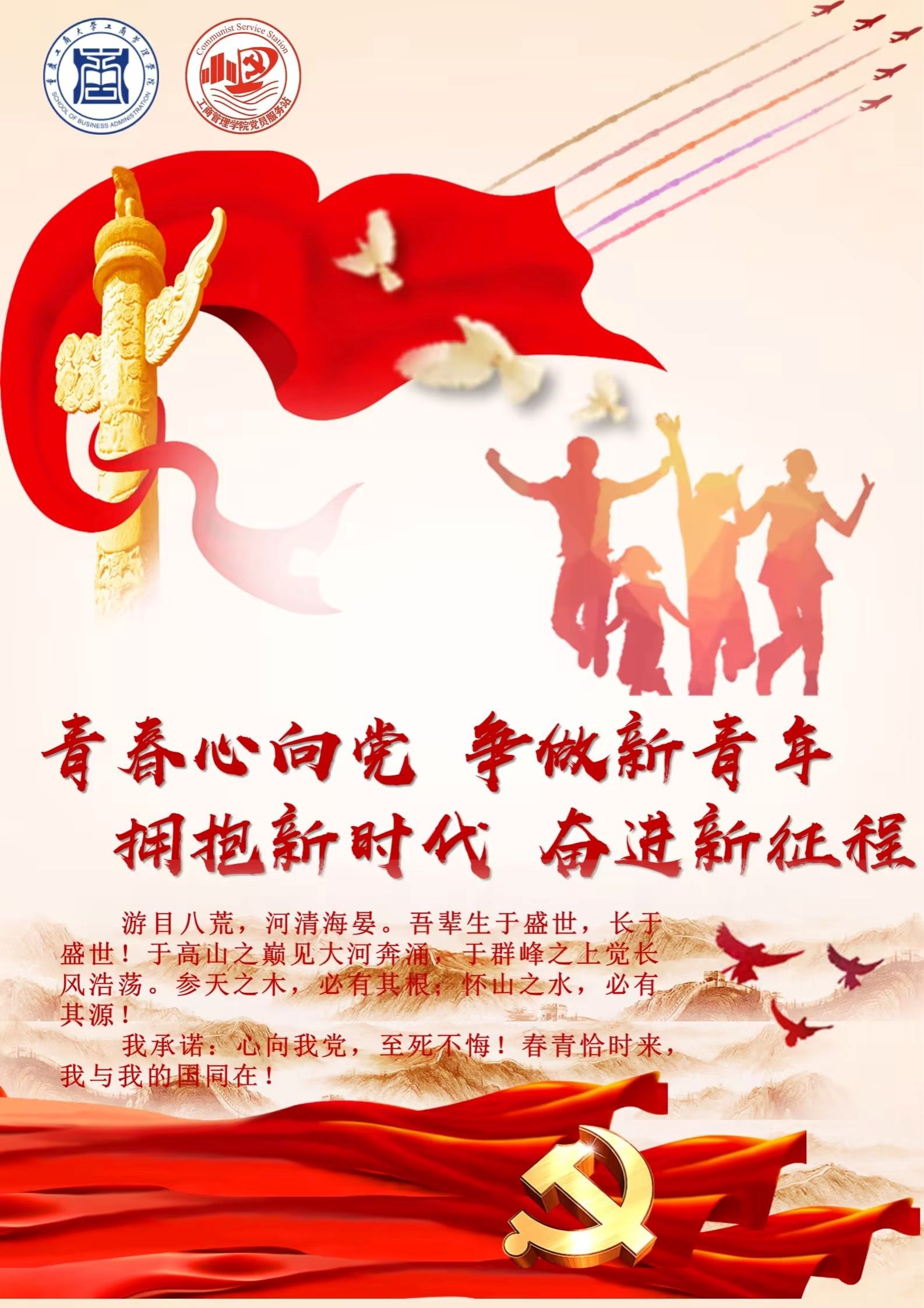 青春的心跳与爱国主义情怀同频共振。为弘扬伟大建党精神,传承红色基因,赓续红色血脉。2138cn太阳集团古天乐“小红船”党员服务站于2023年10月25日—10月28日开展了“笔笔红色映初心,青春向党担使命”海报设计大赛。
