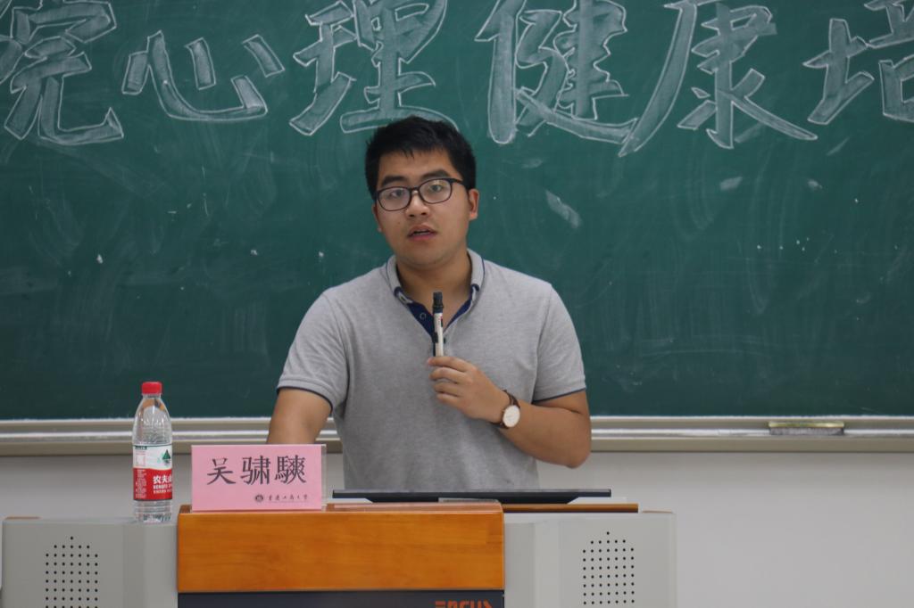为了加深同学们对心理健康的认识,6月9日下午14:00,管理学院2017年心理健康培训讲座在南岸校区博智楼07121顺利开展,各班级心理联络员、寝室室长参加了讲座。此次讲座有幸邀请到国家二级心理咨询师吴骕騻老师担任主讲人。