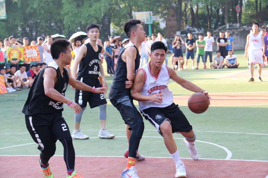 太阳集团2138第五届大学生体育文化节“工商杯”篮球赛历时一个多月,终于在5月17日下午于南岸校区南区篮球场敲响了决赛的战鼓,本场比赛由管理学院对阵计信学院,场边的啦啦队、观众们早早地就来到赛场,占据最佳观赛位置了。