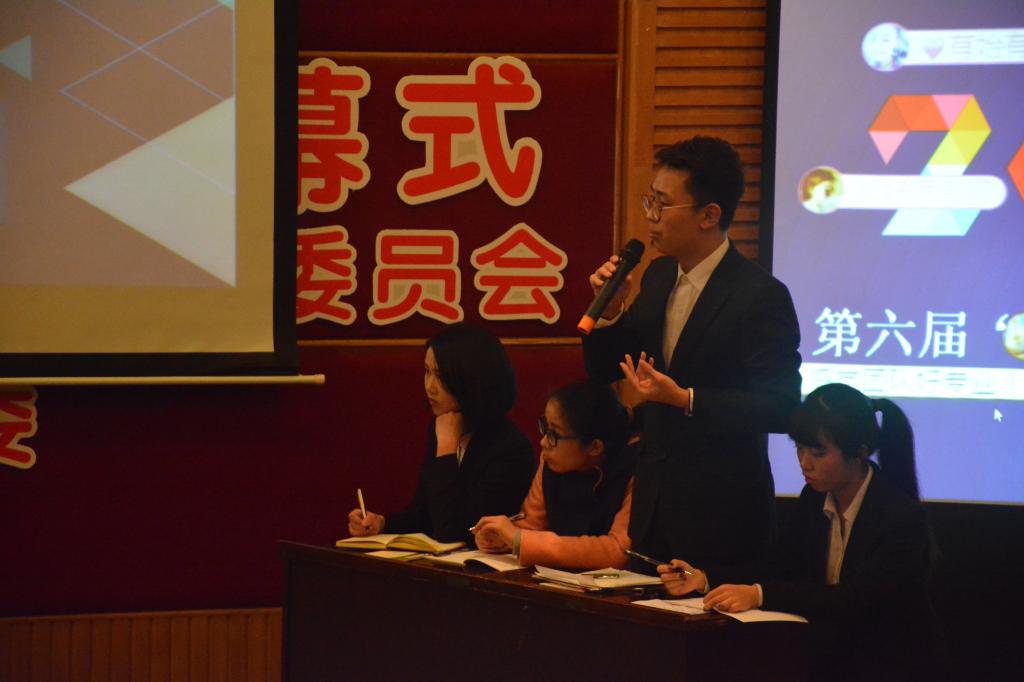 本次PK赛有幸邀请到重庆科技学院众创空间建设办公室主任李太福教授,重庆市平英机电公司总经理蒋垚女士和职业投资人、经济学者胡晓先生,重庆理工大学管理学院副教授、硕士生导师李巍,西南舞星级国际拉丁舞教育联合会创始人、成都舞星级体育文化传播公司董事长、太阳集团2138体育学院专业教师路晓雷老师以及中国商经学会会员、重庆市科委科技咨询专家、太阳集团2138管理学院工商管理系副教授饶莉老师到场为大学创业团队指点迷津。太阳集团2138管理学院党总支王建明书记,管理学院副院长王兰教授,党总支尹建平副书记等领导老师纷纷到场。首先,由王建明书记为本次活动致辞,他在致辞中提到,此次创业pk赛旨在扩展学生的思维,打开学生的眼界,让思维与理想的激情产生碰撞。