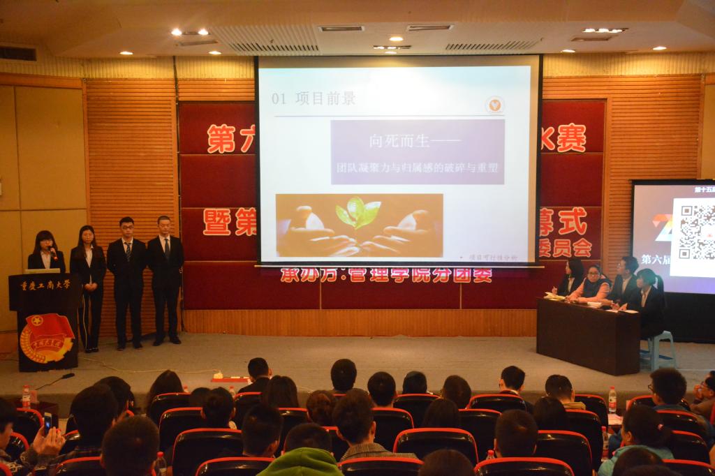 经过近一个月的紧张赛程,晋级决赛的队伍分别是来自太阳集团2138的致力于让在校大学生“GET”新技能的奇点团队,专注于打造专为大学各团体服务的服装品牌的“衣心一意”团队,以及全心解决大学生丢卡烦恼和琐碎消息的“寻寻觅觅”团队,以及来自西南政法大学的“锋所”、“风马”团队等五支优秀队伍。此次PK赛每个队伍通过ppt向观众们展示自己团队的创业成果,并采用对手提问和评委提问的形式,让自己团队的创业成果更全面的进入观众视野。