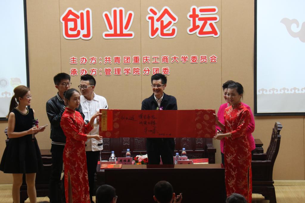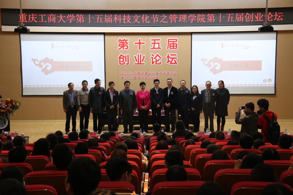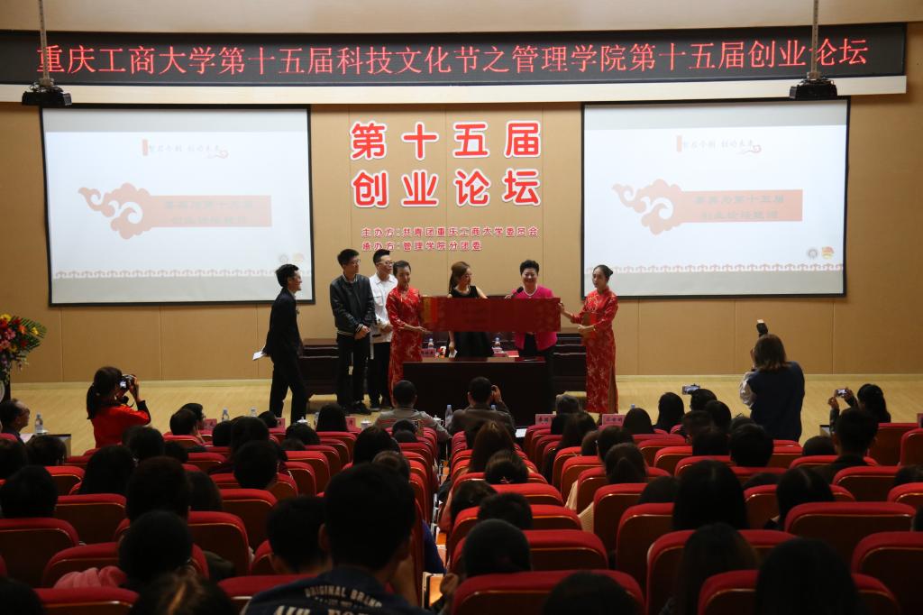 本次活动有幸邀请到渝北区工商联副主席、渝北区龙山商会会长、瑞高集团董事长朱炳清先生以及重庆市工商联副主席、市餐饮行业协会会长、阿兴记产业(集团)有限公司董事长刘英女士以及重庆电视台节目主持人康康与工商学子们共话创业之路,分享成功经验。太阳集团2138党委副书记孟东方教授,副校长李国军教授,党委学工部罗勇部长,招就处石世明处长,党政办冯吉光副主任,校团委杨娟副书记、学工部潘焱副部长、管理学院党总支王建明书记、副院长徐世伟教授、副院长王兰教授,管理学院党总支尹建平副书记等领导到场出席了此次活动。