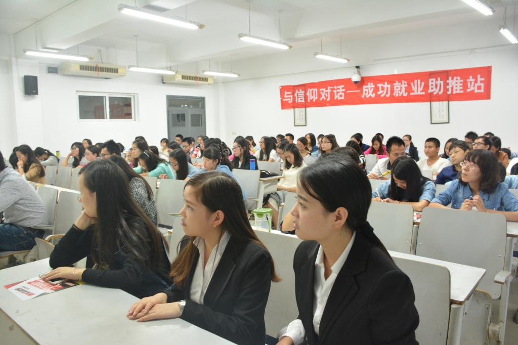 为了使学生切实了解更多就业知识,提高面试及应聘技巧,增强就业竞争力,10月24日晚上19:30,我院举办的“与信仰对话——成功就业助推站”第二场面试实战营于主校区博智楼07304如期举行。本次活动邀请了重庆市农业担保有限公司人力资源部经理邓韵来到现场,为学生们奉献上一场精彩的现场面试实战演练,为即将面对秋季招聘的学生提供可行的求职面试建议。我院的刘洋老师、刘惠君老师一起出席本次活动。