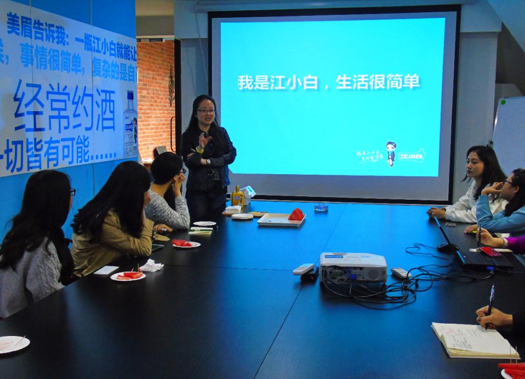 随后,同学们走进了文艺吧的会议室。在助理协助下,宋妮女士为同学们做了简短的宣讲,宣讲的内容主要是江小白的企业文化。她说道:“创建一个卓越的团队,需要吸纳比自己更出众的个体。”宋妮讲述了江小白企业招聘的选人和用人标准,最重要的一点是要永远保持年轻的活力和创新的竞争力,保持天马行空的想象力和脚踏实地的执行力。她说道:“能保持想象力和执行力,做你自己,这样才能在职场中找到自己,做自己想做的事。”这让同学们对企业的创新及个性要求产生很大的启发。
