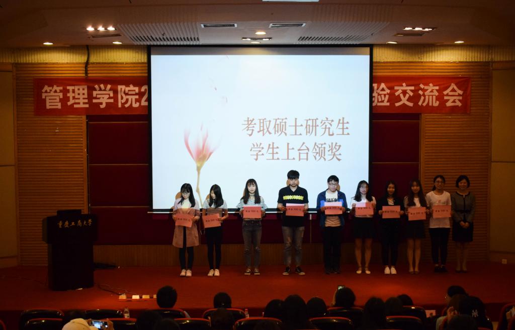 辅导员刘榴老师宣读了管理学院2018年考取硕士研究生的学生名单后,王静副书记和各位辅导员分批次为成功升研的同学颁发院级考研奖学金。