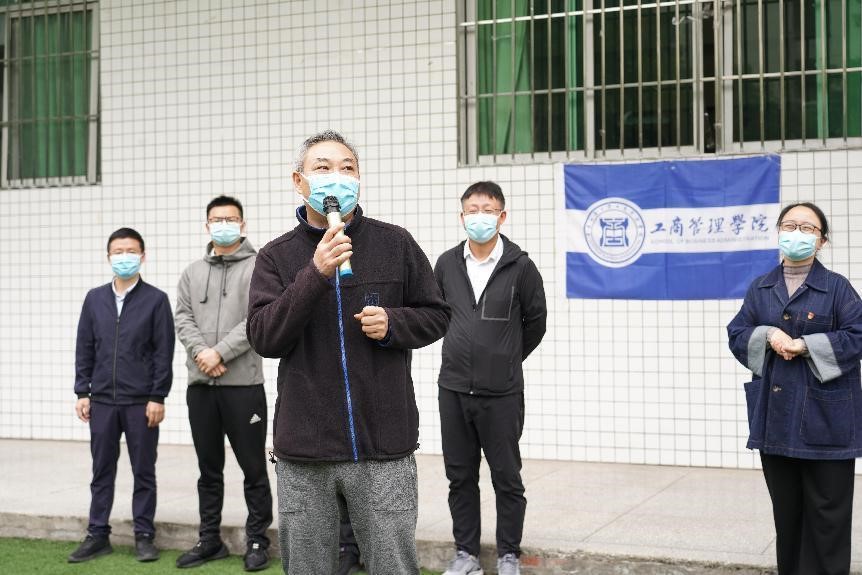 紧接着,随着哨声响起,李国军校长开球,本次“工商管理杯”篮球赛正式开始。