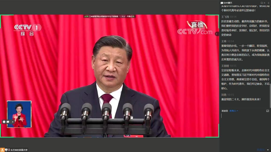 由于受疫情影响,同学们在宿舍、家里通过线上的方式共同观看开幕式,大家认为习近平总书记所作的报告,纵观历史、展望未来,全面总结了十九大以来党和国家事业取得的历史性成就和历史性变革,从战略全局上对党和国家事业作出规划和部署。党的二十大是在迈上全面建设社会主义现代化国家新征程、向第二个百年奋斗目标进军的关键时刻召开的一次十分重要的大会,开好这次大会,事关党和国家事业继往开来,事关中国特色社会主义前途命运,事关中华民族伟大复兴,对鼓舞和动员全党全军全国各族人民坚持和发展中国特色社会主义、全面建设社会主义现代化国家、全面推进中华民族伟大复兴具有重大意义。