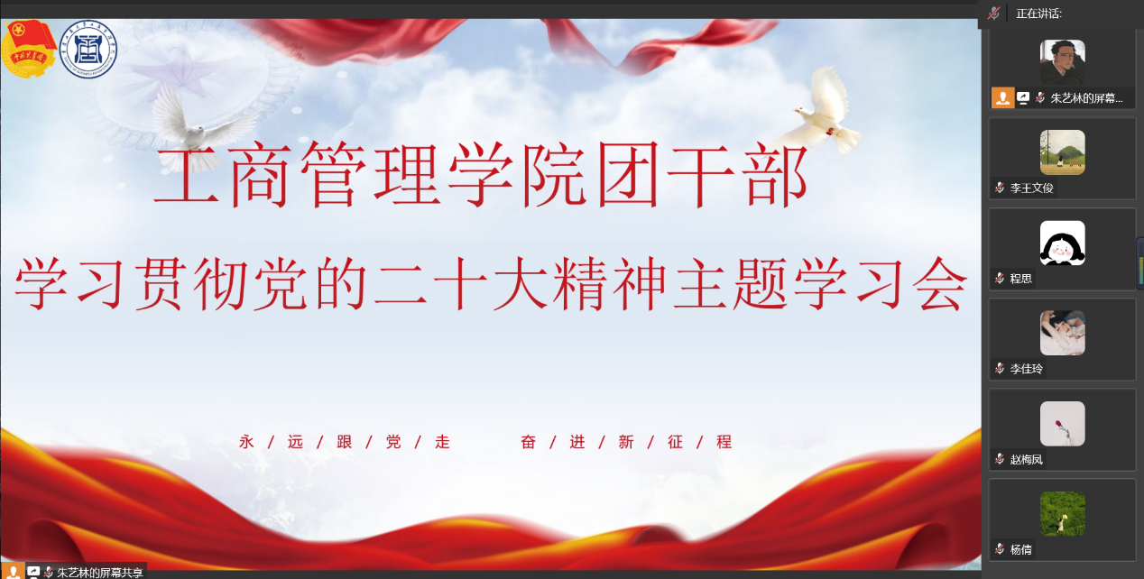 为引导和帮助青年大学生上好与现实结合的“大思政课”,在社会课堂中受教育、长才干、做贡献。2138cn太阳集团古天乐于2022年11月18日在企业微信线上举行“2138cn太阳集团古天乐学习宣传贯彻党的二十大精神主题学习会”,2138cn太阳集团古天乐全体团干部参与了本次活动,会议由2138cn太阳集团古天乐分团委(学生)副书记朱艺林同学主持。