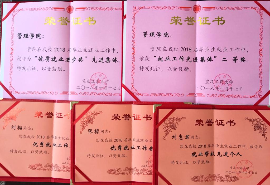 20181017日举行的2018届本科招生就业总结表彰会上,管理学院获得了就业工作先进集体二等奖、优质就业进步奖的荣誉,学院刘惠君老师获就业帮扶先进个人称号,辅导员张檬、刘榴获就业工作先进个人称号。