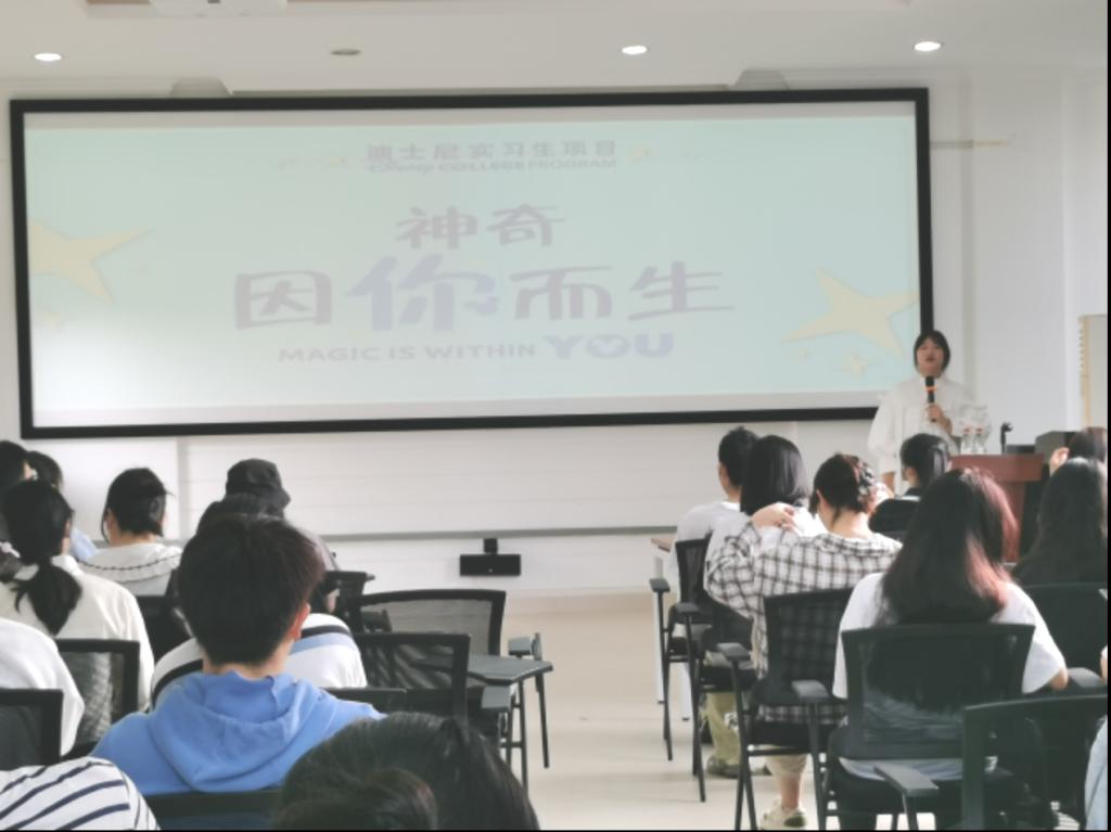 此外,招聘会上上海迪士尼一线快乐主人姜俊对上海迪士尼的实习项目中的项目工作概况进行了介绍,在上海迪士尼度假区有独特的工作体验,上海迪士尼提供乐园运营、餐饮运营、商品运营、酒店运营四方面的多个实习岗位,还就实习津贴、交通补贴、住宿环节、餐饮补贴等进行了介绍。最后上海迪士尼校园招聘专员周星谕对实习项目的学习和生活方面进行了介绍,迪士尼可以考取独特的操作证书,有自己的在线学习平台,实习结束后还可以签订就业签合同,实现职业发展。