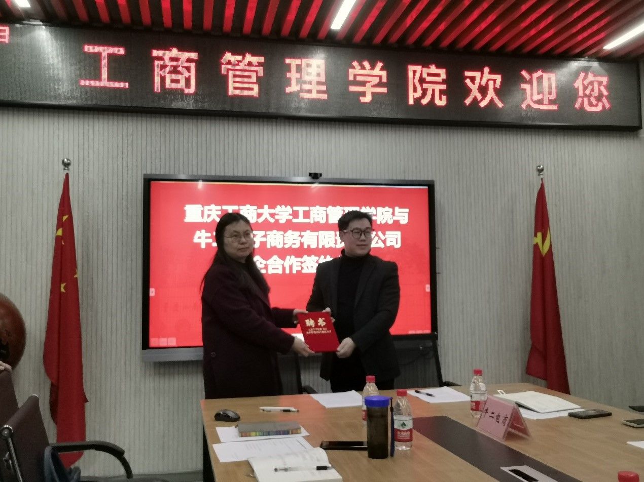 邱继勤副院长首先对各位嘉宾的到来表示欢迎,并介绍了学院及市场营销专业的发展现状,指出当下新文科建设背景下传统专业所面临的转型升级挑战。随后邱院长代表我院与牛二电子商务有限责任公司田利伟总经理签订校企合作协议,未来双方将在人才培养、实习实践等方面展开持续合作。刘清华老师介绍了市场营销系与该公司在《新媒体营销》课程中的产教融合课程共建情况,随着校企合作协议的签订,将进一步深化双方在数字营销人才培养上的合作共赢。