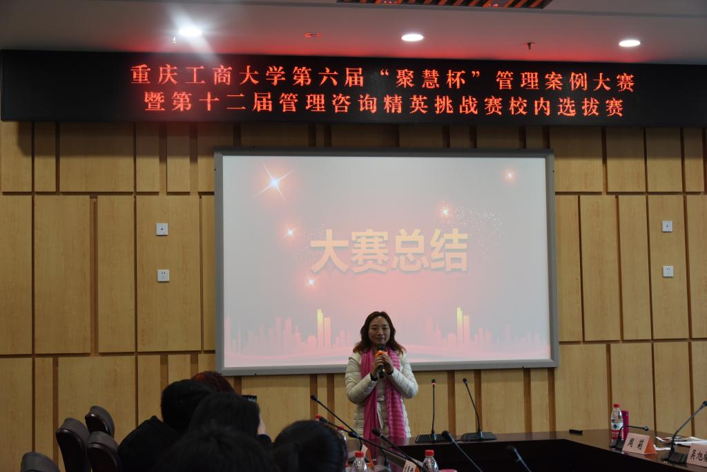 在本次比赛刚开始宣传时,便有很多同学积极踊跃的报名参加,第六届“聚慧杯”管理案例报名队伍达到了97支,成为了迄今参与人数最多的一次比赛。这次比赛之所以引人关注一方面是因为大赛影响力渐强,更是因为这是一个走进企业,了解课堂外的管理实践,开拓眼界的绝好机会。重庆聚慧食品有限公司携手太阳集团2138管理学院、未来经理人协会一起为同学们打造连接课堂与实际的桥梁,目的是为了同学们从实践中剖析管理活动规律,将学过的管理知识和实际管理活动相结合。在经过了初赛与复赛的层层选拔后,共有七支队伍走向决赛舞台。他们凭借制作精良的PPT,对重庆聚慧食品有限公司管理独到的见解以及从容应答评委的犀利问题,使评委们赞口不绝。在肯定参赛报告后评委们针对不同主题的报告给出了具体的建议,使参赛队伍受益匪浅。在参赛队伍全部展示完毕后,刘惠君副教授对本次决赛进行点评,称管理案例大赛是一个非常有意义的活动,这是同学们相互学习,相互成长的过程,要从企业的角度研究问题,做任何事情都要从实际出发。之后聚慧公司何群英总监对此大赛也做出了点评,称赞同学们的案例完成得非常出色,并希望赛后能与同学们探讨交流管理案例的解决方案。最后,周莉院长对本次大赛进行了总结,对重庆聚慧食品有限公司表达了谢意,感谢公司为此次比赛提供机会和素材并给予支持,也希望能拓宽与公司合作的范围,同时希望管理案例大赛在以后的比赛中能够吸引更多的同学参与,培养出应用型、复合型、创新型人才,实现学校总体人才培养目标。