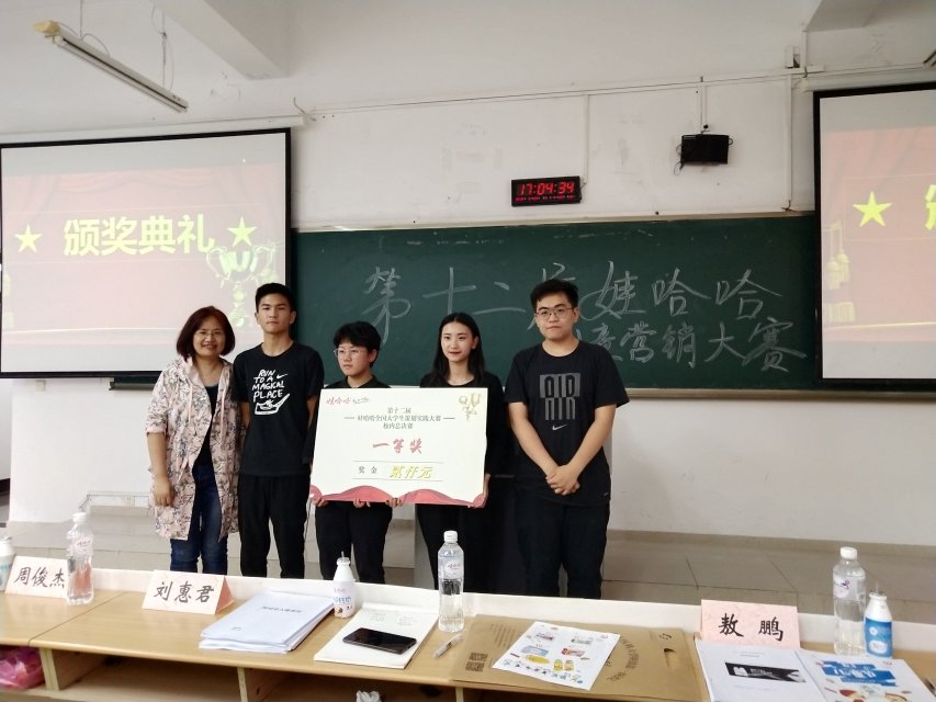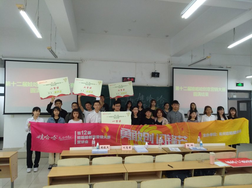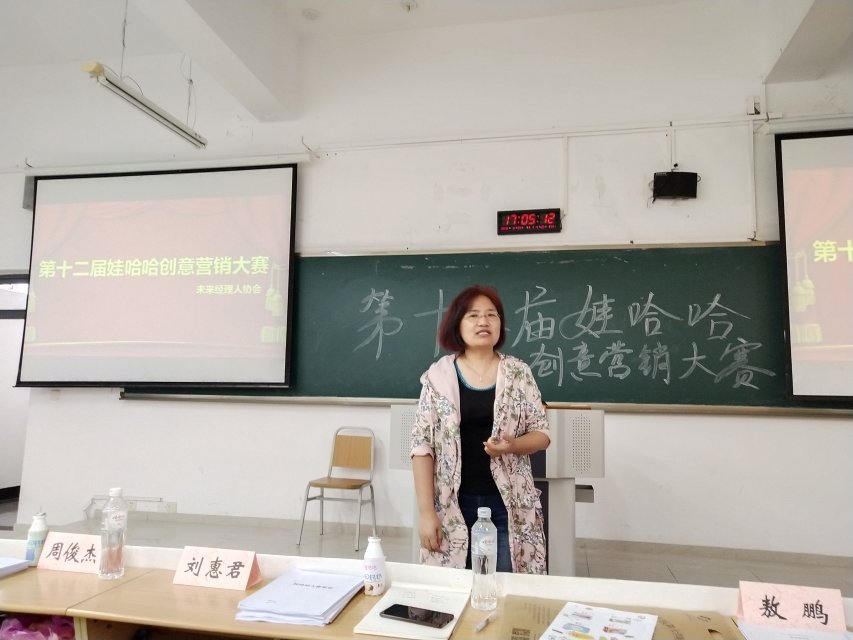 2019年5月24日下午,由娃哈哈集团重庆公司主办、太阳集团2138未来经理人协会承办的娃哈哈创意营销策划大赛校内赛决赛在我校南岸校区七教博智楼208正式举行,出席本次决赛的评委嘉宾为太阳集团2138管理学院刘惠君副教授、娃哈哈集团重庆分公司比赛负责人周俊杰先生与敖鹏先生。本营销大赛共历时两个月,包括了销售实战比拼、抖音拍摄、创意营销方案的制作与展示等多个部分,是一场实践性很强的比赛。