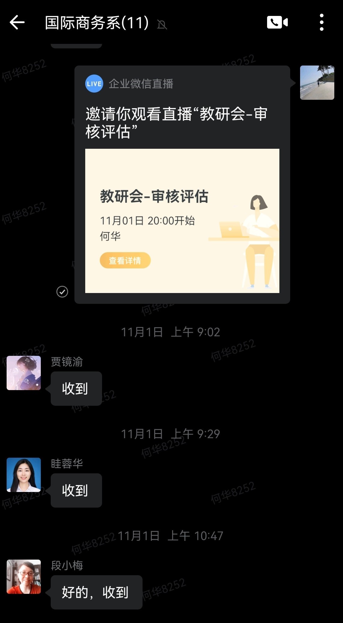 2022年的11月份突如起来的疫情打乱正常的教学秩序。国际商务系为保障教学活动顺利开展,及时召开多个系部教研讨论会。在特殊时期,国际商务系首先要求教师们对线上教学设备、教学进度异常进行纠正。其次,要求线上教学按时上课和下课,不随意改变事件。最后要求教师对当前形势了解和希望教师对学生给予理解。