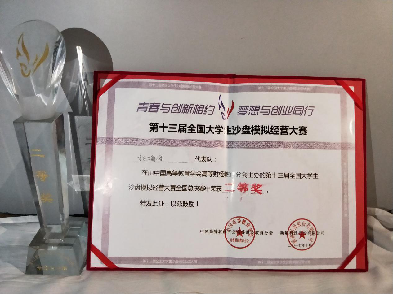 在管理学院饶莉老师带领下,由工商管理专业14级解超、陶筠芸,15级余晗、黄思华、常宁宁五位同学组成的太阳集团2138代表队参加了总决赛。经过三天的激烈角逐,最终荣获全国二等奖。