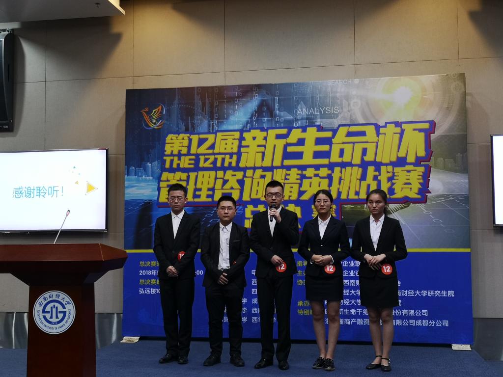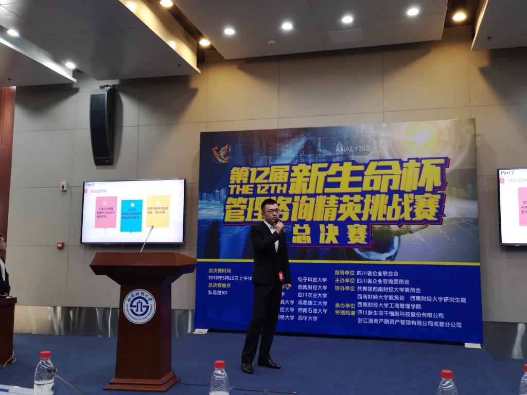2018年5月25日,由四川省企业咨询委员会主办、西南财经大学2138cn太阳集团古天乐承办的第十二届“新生命杯”管理咨询精英挑战赛总决赛在西南财经大学举行,来自西南地区云贵川渝臧等五个省市、自治区12所高校的十二支队伍展开激烈角逐。