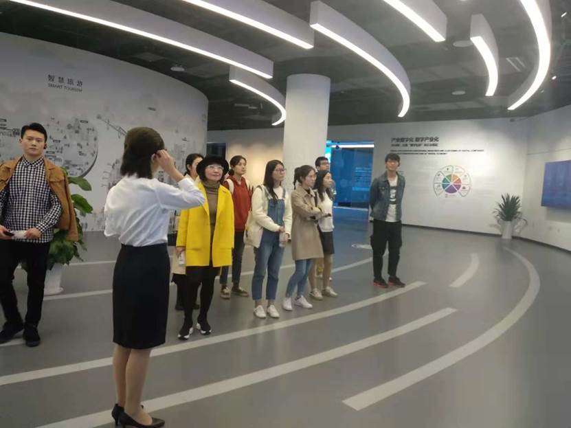 2018年11月1日,太阳集团2138管理学院2017级企业管理专业8名研究生在唐敏老师的带领下,走进了位于重庆市两江新区黄山大道两江幸福广场的大数据智能化展示中心,开展了为期半天的《大数据管理专题》移动课堂。