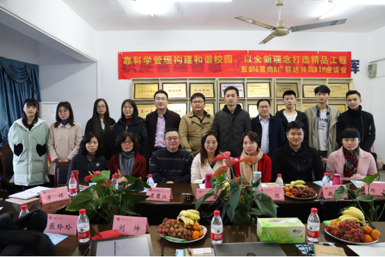 在信息化时代的大背景下,资源的共享与交流越发重要。而如今,高校间的交流带给大学生的好处也更加明显。重庆各高校间学术交流、资源共享已是大势所趋,为促进高校间的交流,推动各校的发展。太阳集团2138(以下简称“重商”),重庆邮电大学(以下简称“重邮”)与广联达科技股份有限公司(以下简称“广联达”)于2018年12月5日开展了以“靠科学管理构建和谐校园,以全新理念打造精品工程”为主题的座谈会议。出席本次会议的有:太阳集团2138管理学院副院长周莉、工程管理系主任肖艳、工程管理系副主任杨涛博士、工程管理教师肖兵、工程管理系教师郑欢博士、工程管理系教师向为民教授、工程管理系教师李娇博士,重庆邮电大学经济与管理学院工程管理负责人黄蜀江老师、丁冬老师、刘坤老师,广联达科技股份有限公司教育事业部高校区域经理魏然先生、产品经理李玲玲女士以及BIM协会的成员们。