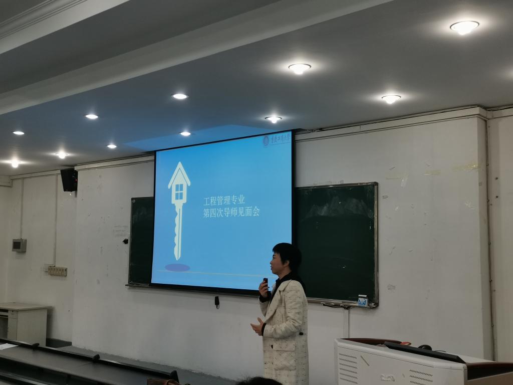 2019年12月5日下午14点,我校2019级工程管理专业学生在江北校区逸智楼A311开展了本学期第次导师见面大会,本次导师见面大会主要为同学们讲解了工程管理的就业方向以及就业前景。本次大会工程管理专业导师肖艳、杨涛老师主持,并邀请了工程管理系全职外聘企业博士郜博士为同学们分享工程管理专业就业方向