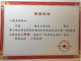 本赛分为广联达BIM钢筋算量GGJ2013、广联达BIM土建算量GCL2013两个科目,采取手工绘制+CAD导图相结合的方式进行工程建模,模拟实际工作场景,钢筋算量与土建算量工程模型互导,快速完成钢筋量和土建工程清单量的计算。在管理学院肖艳老师和肖兵老师的指导带领下,参赛团队与河南大学、厦门理工学院、河北科技大学等176所本科学校进行了激烈地角逐,最终取得《广联达BIM系列软件技能鉴定证书》共计35人次(具体名单见下表),“工程名就”队排名第89位、荣获全国三等奖,肖艳、肖兵老师荣获“优秀指导教师”称号,协会负责人赵娅婷荣获“优秀组织者”称号。