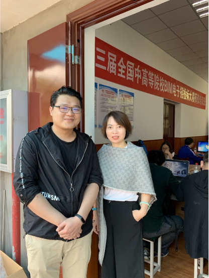 (广联达BIM招投标大赛技术负责人林俊杰与肖艳老师合影)